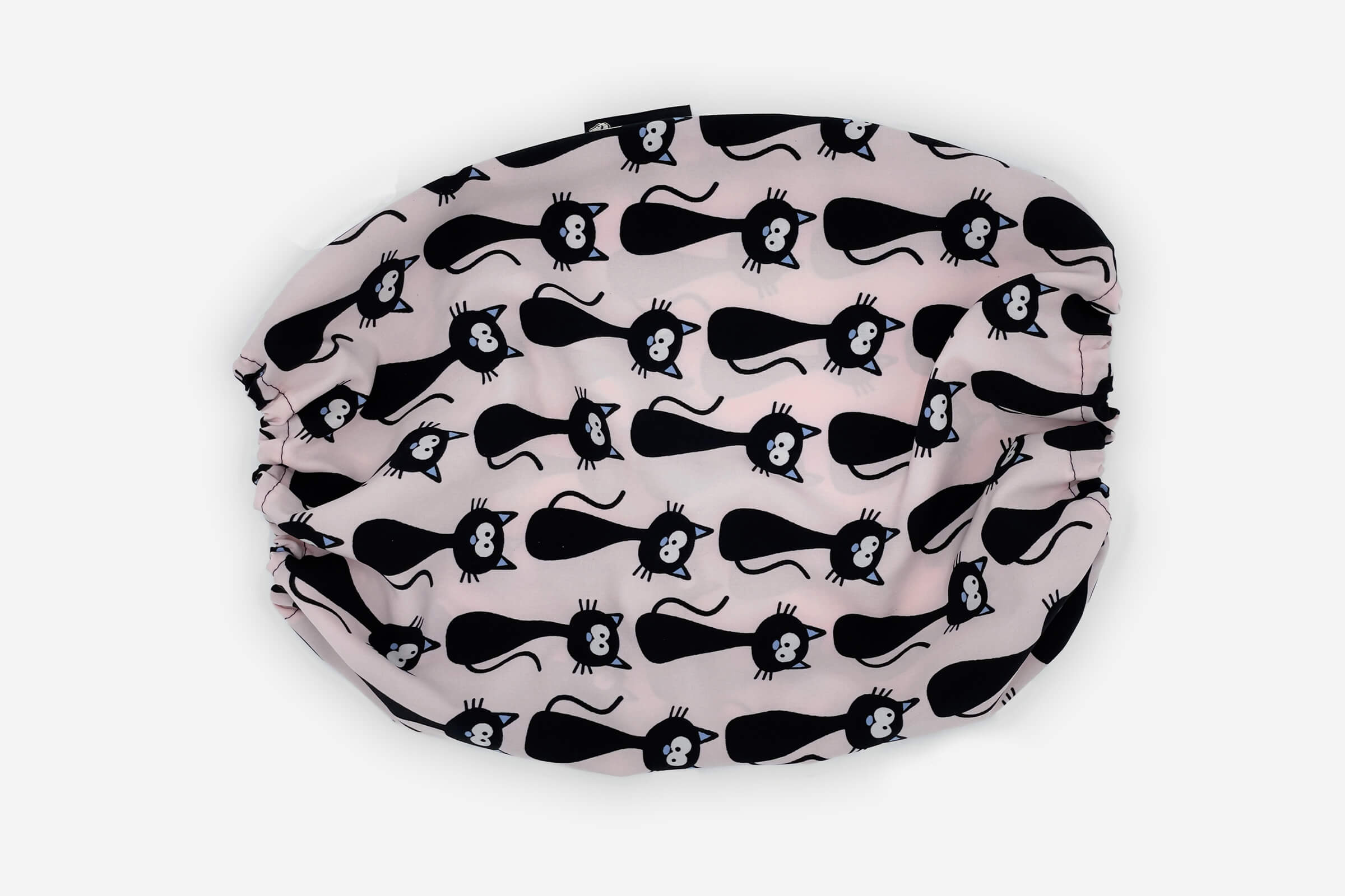 Návlek Cats zdobí roztomilé černé kočky na světle růžovém pozadí. Ušanka je vyrobena z elastického neprůhledného materiálu, který se pohodlně nosí.