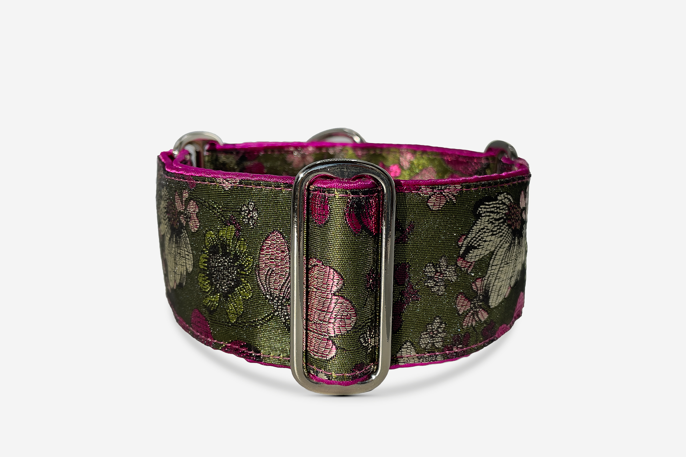 Naše obojky jsou vyrobeny z tkaných brokátových látek a podšité saténem. Používáme ve výrobě obojků vysoce kvalitní kování a extra silné nitě, abychom zajistili tu nejlepší bezpečnost produktu. Některé borkáty jsou jemnější struktury a nelze je doporučit pro každodenní nošení.