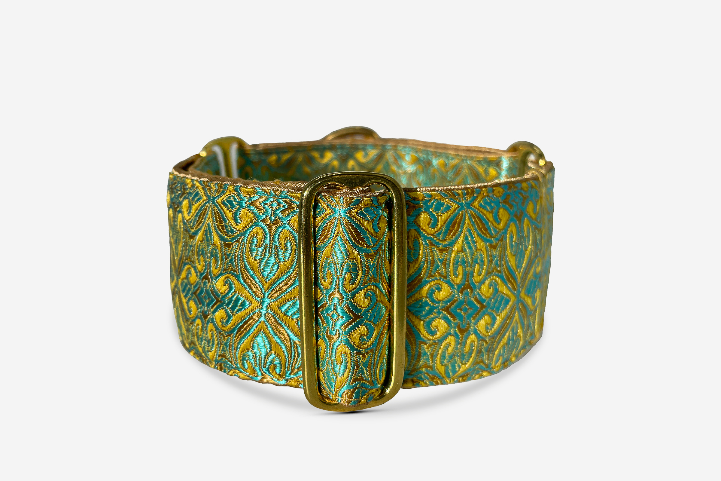 Naše obojky jsou vyrobeny z tkaných brokátových látek a podšité saténem. Používáme ve výrobě obojků vysoce kvalitní kování a extra silné nitě, abychom zajistili tu nejlepší bezpečnost produktu. Některé borkáty jsou jemnější struktury a nelze je doporučit pro každodenní nošení.