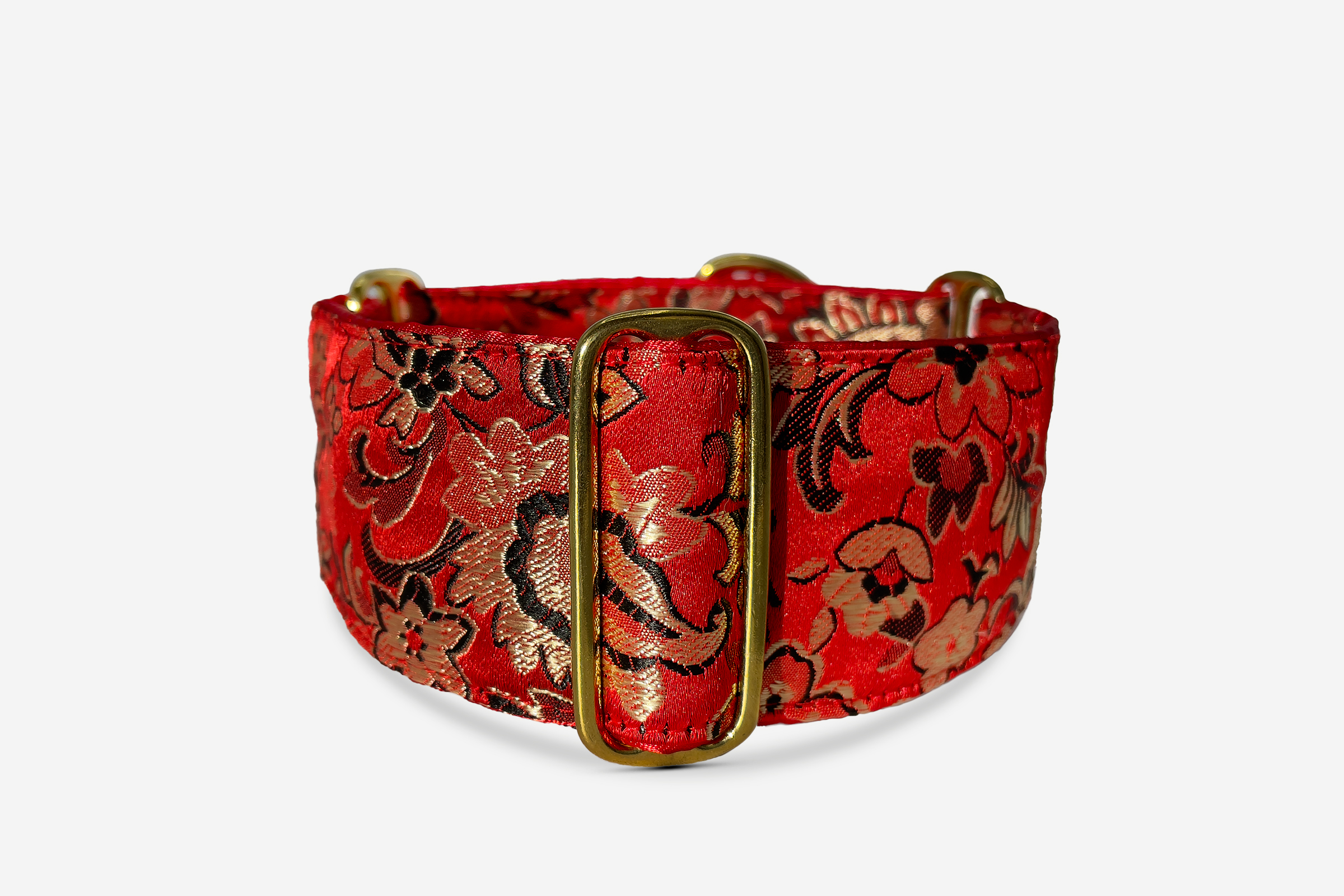 Our collars are created with beautiful brocade fabrics and lined with satin. Woven brocade fabric is soft and highly fashionable. We use high quality metal fittings and our sewing is done with extra strong threads to ensure best safety of the product. Some of our brocades are more delicate luxurious pieces and may not be recommended for every day wear.